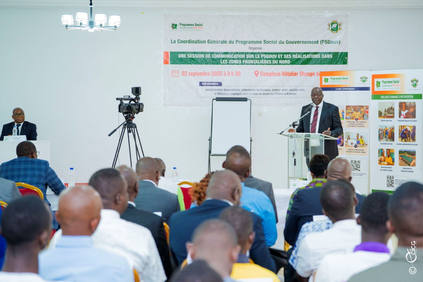 Abidjan, le 04 septembre 2025 - La session de communication sur le Programme social du gouvernement (Psgouv) et ses réalisations dans les zones frontalières du nord à fin décembre 2024 s'est tenue, le 02 septembre 2025 à Korhogo, devant un parterre archicomble de personnalités membres de l'administration déconcentrée, des collectivités territoriales, du secteur privé, de société civile, etc.